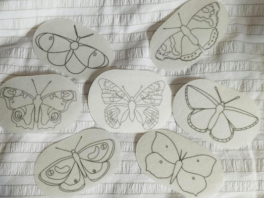 English Butterfly Stick and Stitch Washable Transfers, Peacock, Red Admiral, Orange Tip, Meadow Brown, Common Blue, Painted Lady, Brimstone