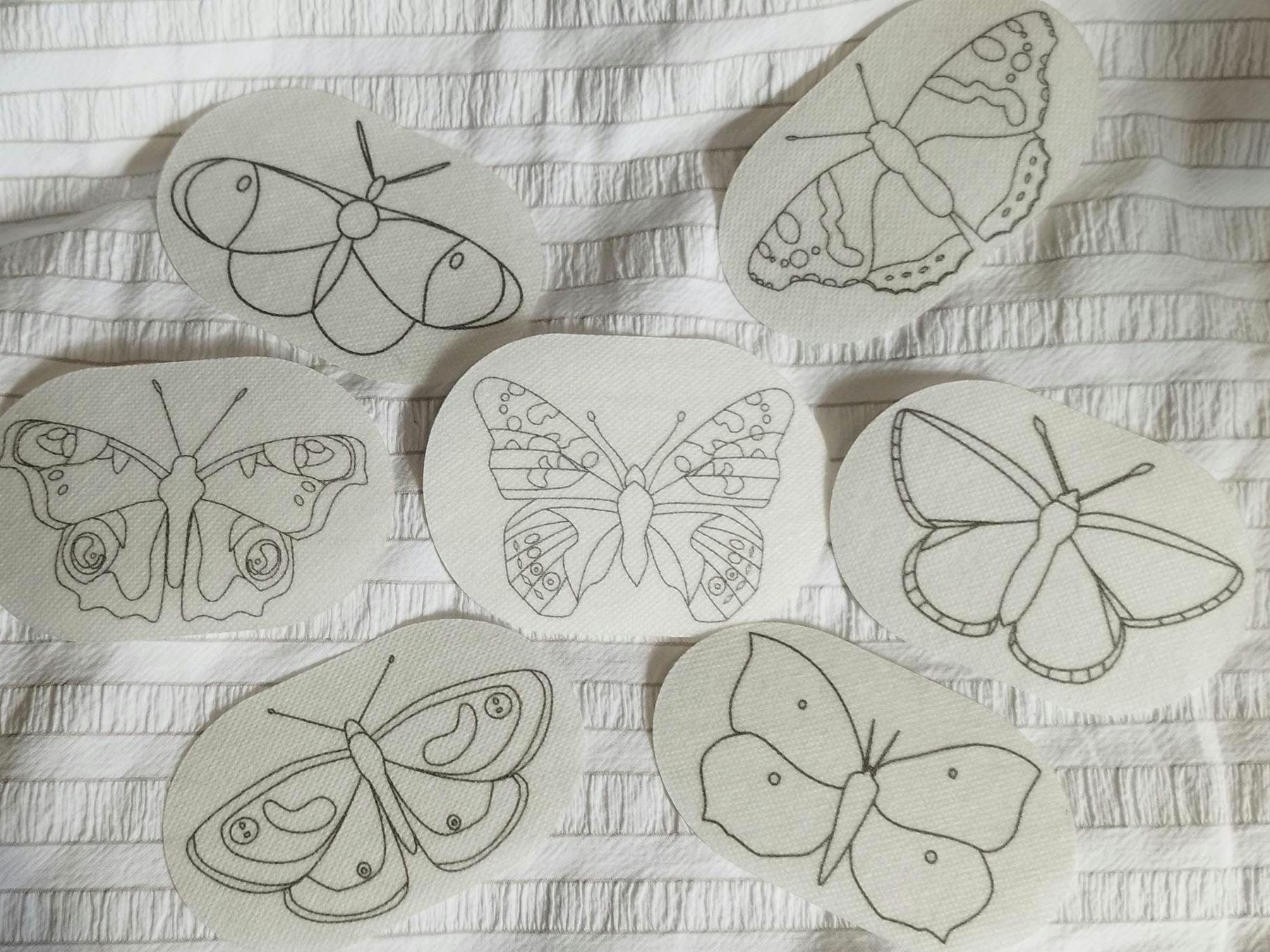 This pack contains 7 stick and stitch designs of drawings based on English butterflies.
