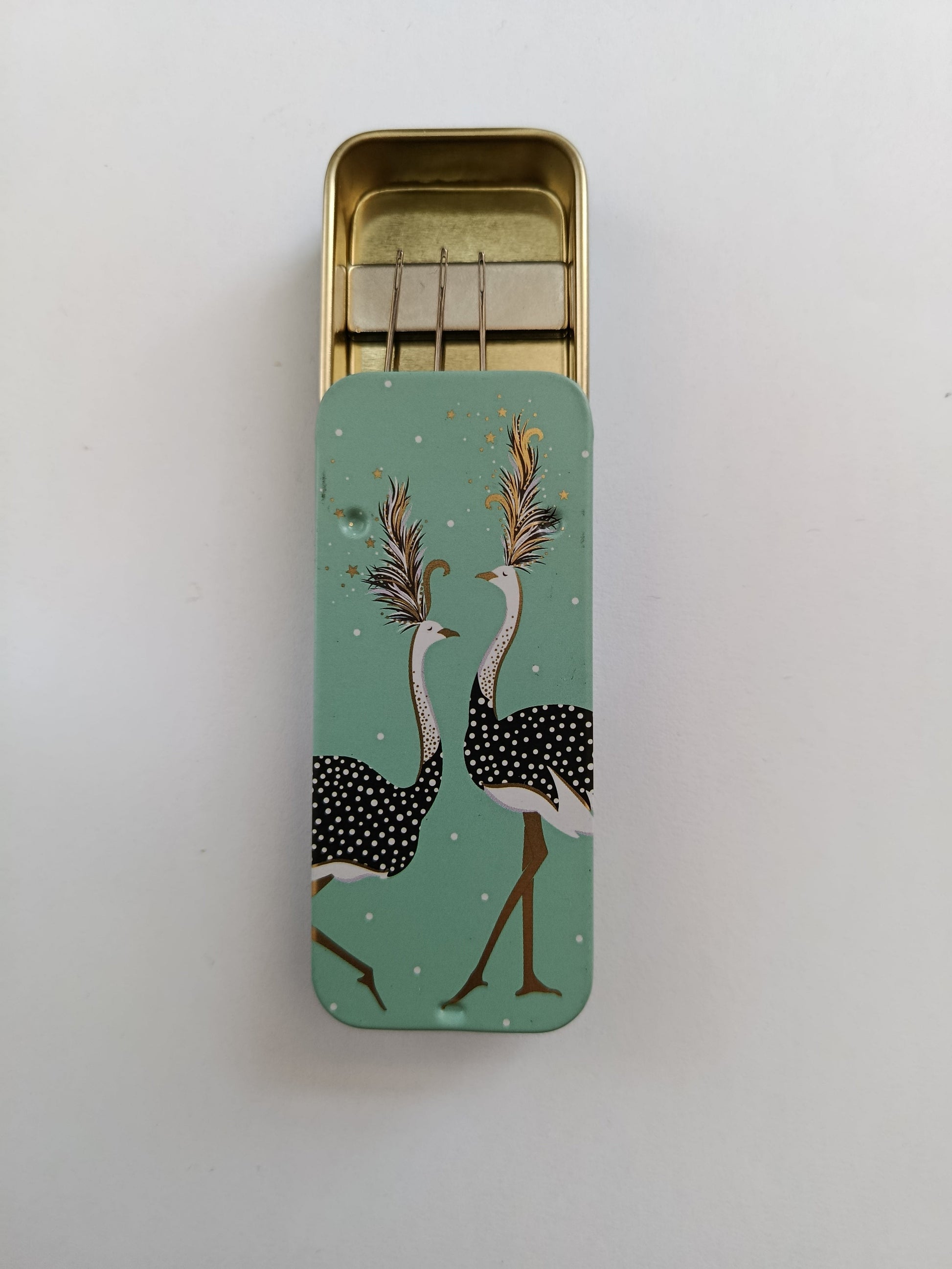 The magnet inside of the tin ensures that your needles stay in place and are easy to access when needed. The sliding tin lid allows for convenient opening and closing, keeping your needles protected and preventing them from falling out, perfect for travelling!